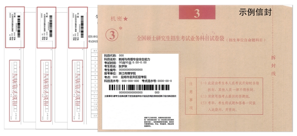 为做好2025年研究生招生考试自命题科目电子阅卷工作,永利官网自命题科目试卷袋信封上为每位考生提供了三张“答题纸条形码”。